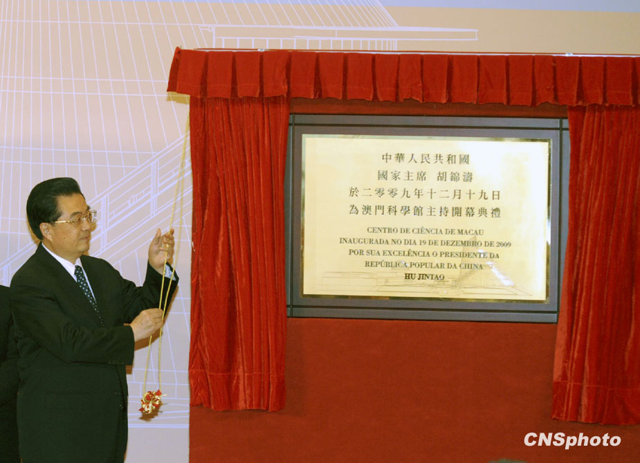 12月19日下午,國家主席胡錦濤在澳門出席澳門科學館開幕典禮并親手為之揭幕。中新社發 廖攀 攝