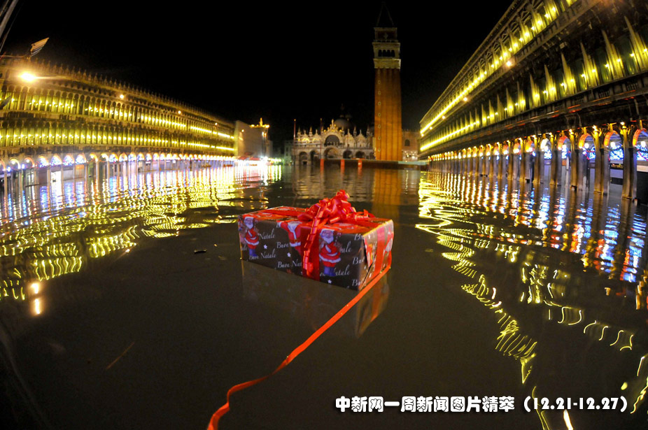 25日(周五),意大利水城威尼斯圣馬可廣場被洪水浸泡。自從11月份以來,水城威尼斯受潮汐和一股強烈的熱帶風暴影響屢遭洪水“淹沒”。