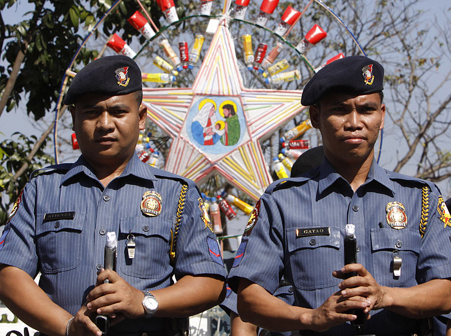 12月29日,菲律賓首都南部的塔吉格市警察部隊為了防止警務人員在慶祝新年時胡亂開槍,下令用膠紙把槍口封起來。圖片來源:中國新聞網
