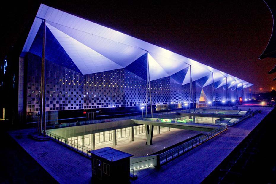 12月30日,隨著世博臨近世博園工地一片繁忙景象,夜間黃浦江畔世博各主場(chǎng)館進(jìn)行燈光調(diào)試。