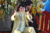 美國當(dāng)?shù)貢r間1月1日,第121屆美國玫瑰花車大游行在加州帕薩迪納市隆重舉行。著名影星成龍助陣中國上海世博花車。圖片來源:中國新聞網(wǎng)