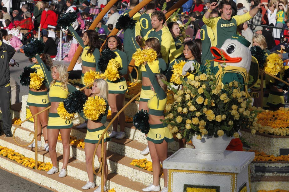 圖為美國第121屆玫瑰花車大游行現場。