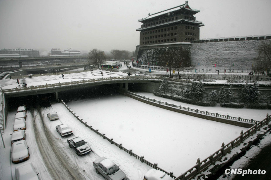 1月3日,北京城降下大雪,積雪深達6厘米,預計雪花會飄灑一整天。天氣預報稱,北京地區的氣溫有可能達到-16℃,從而逼近40年來的歷史低溫極值。圖片來源:中國新聞網
