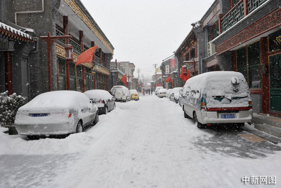 琉璃廠字畫街雪景。中新網(wǎng)記者 金碩 攝