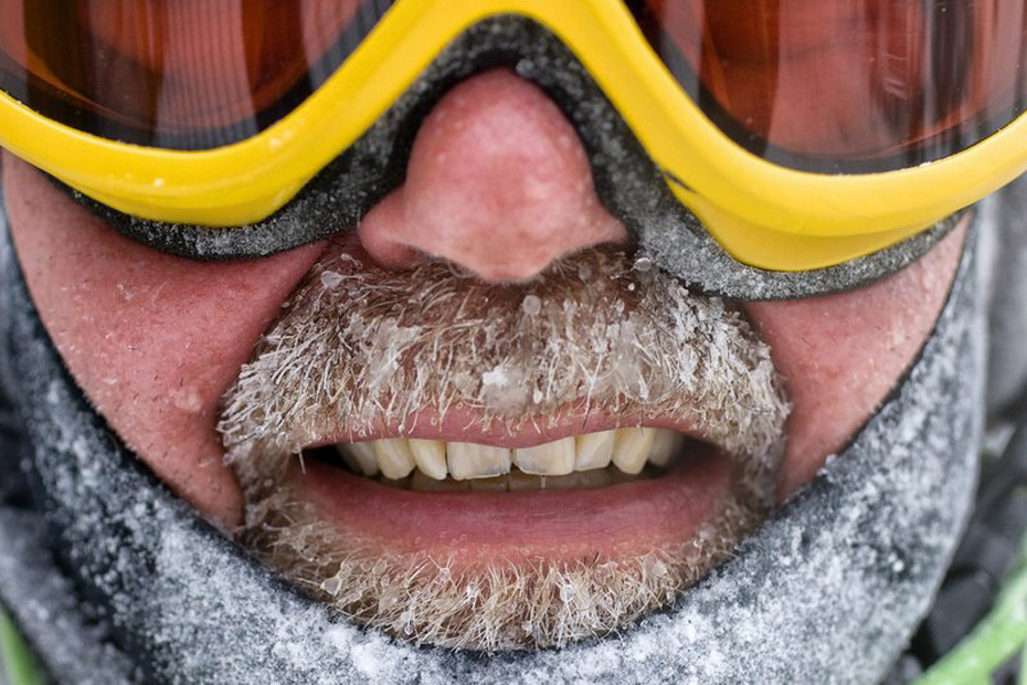 1月2日,瑞士阿羅薩,天氣嚴寒,一名男子的胡須也結了冰。
