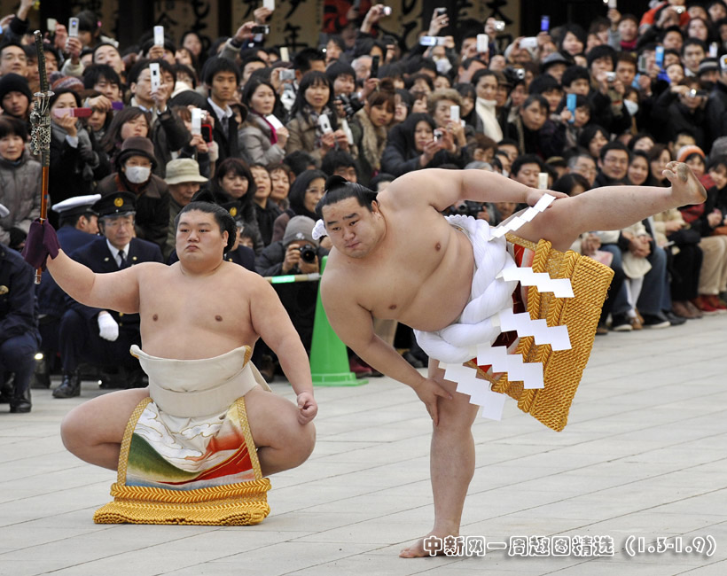 1月6日,日本舉行了傳統(tǒng)的相撲表演迎新年活動。圖片來源:中國新聞網(wǎng)>>點(diǎn)擊觀看詳細(xì)內(nèi)容