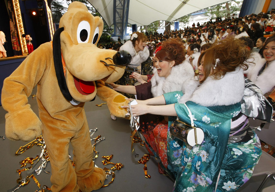 1月11日,日本迎來(lái)2010年的成人節(jié)日,所有年滿20歲的年輕人都將在這一天宣告自己邁進(jìn)了成人行列。眾多年輕的日本女孩身穿和服在東京迪斯尼樂(lè)園里快樂(lè)游玩,迎接自己的節(jié)日。