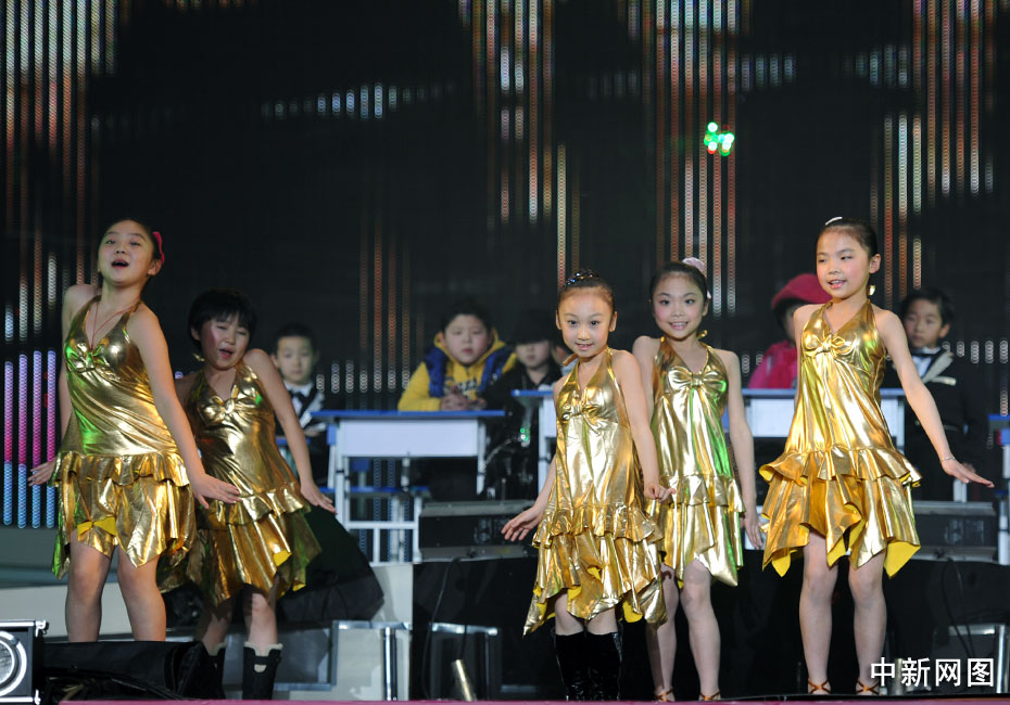 1月11日晚,第二屆音樂風云榜新人盛典在京舉行,盛典現(xiàn)場的音樂課上,兒童版的Wonder Girl、Super Junior、邁克爾·杰克遜、曾軼可、大張偉紛紛登臺獻藝,讓現(xiàn)場觀眾們笑聲不斷。中新網(wǎng)記者 金碩 攝