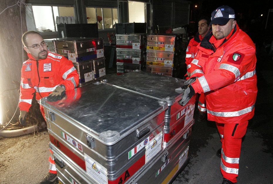 圖為意大利救援隊正在裝備救援物資。海地發生強烈地震,傷亡慘重,國際社會在第一時間紛紛伸出援手。中國、美國、法國等多個國家和地區的救援隊已集結完畢,奔赴海地地震災區。圖片來源:中國新聞網