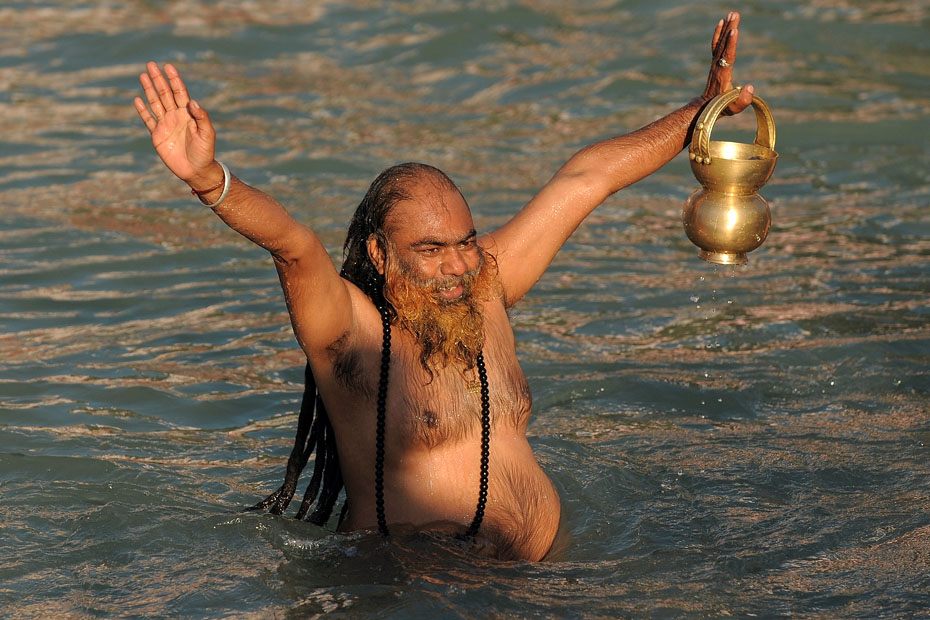 1月14日,數千名印度教信徒前往恒河參加世界上最大的宗教集會大壺節,并在印度圣河——恒河進行了沐浴儀式。圖片來源:中國新聞網