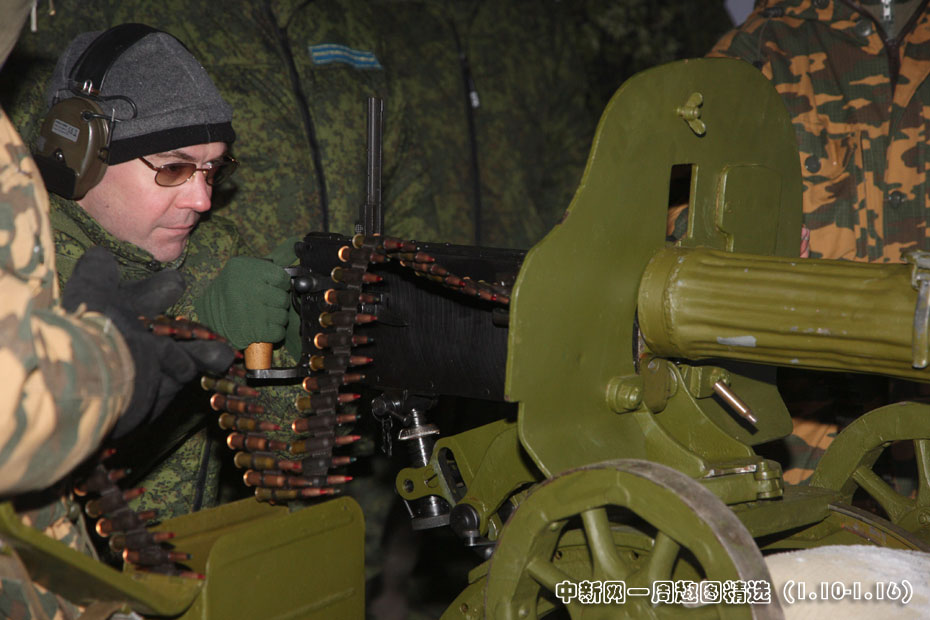 當地時間1月14日,俄羅斯總統梅德韋杰夫在莫斯科郊外參觀二戰軍事武器展覽,并且體驗各種武器裝備圖片來源:中國新聞網>>點擊觀看詳細內容