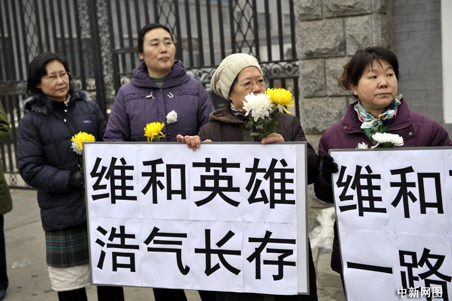 1月19日,北京民眾自發守候在通往北京八寶山殯儀館的路口迎接英烈的靈柩。當日,八位海地地震遇難中國維和警察的靈柩搭乘專機將抵達北京。中新網記者 金碩 攝