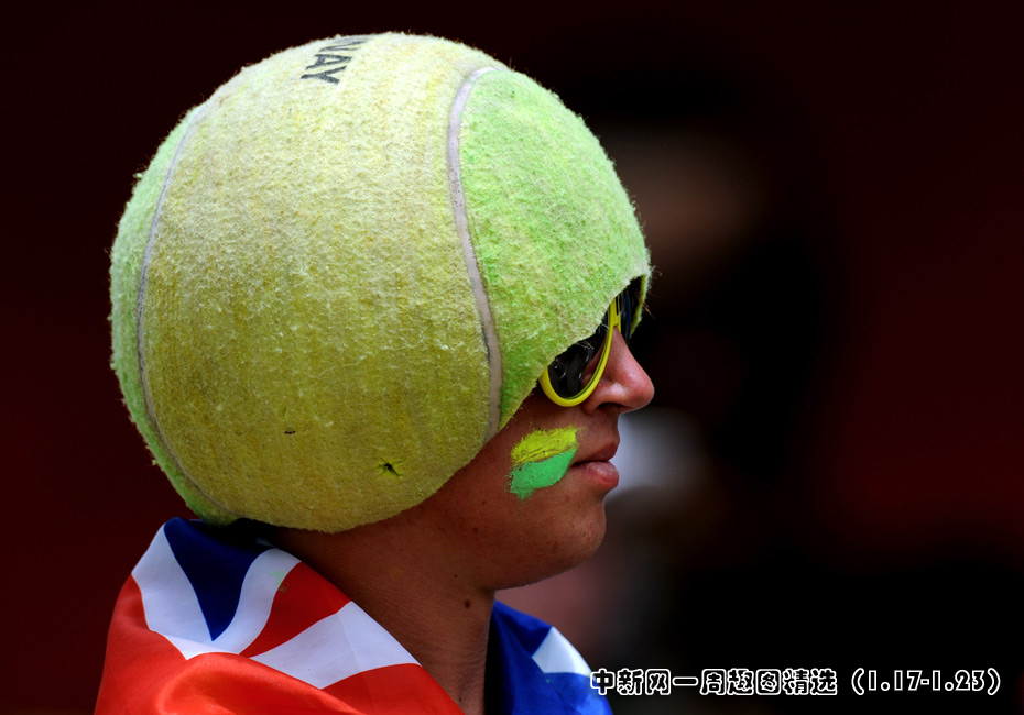 1月21日,澳大利亞墨爾本網球公開賽的第四天,一個頭戴巨型網球帽的觀眾在看臺上顯得格外特別。圖片來源:中國新聞網