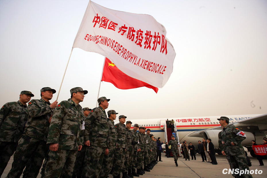 1月24日18時(shí),由中國(guó)人民解放軍醫(yī)護(hù)人員和管理人員組成的中國(guó)醫(yī)療防疫救護(hù)隊(duì)一行40人乘坐軍運(yùn)包機(jī)離開北京,啟程前往海地進(jìn)行人道主義救援任務(wù)。