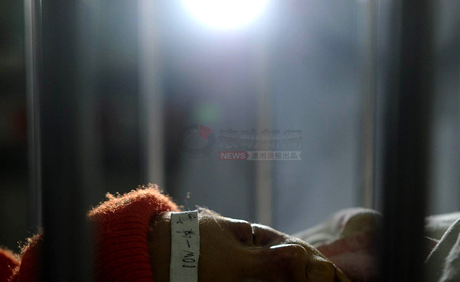 1月18日,一束燈光照在病床上,小振和沐浴在溫暖的燈光下,很安靜。瀟湘晨報 記者 楊抒懷 攝