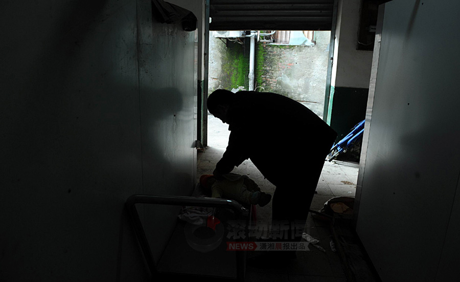 1月19日,省兒童醫院太平間,高雄飛給小振和穿上剛買的新衣服,送兒子最后一程。“兒子!爸爸給 你穿衣服來了,乖乖的啊!”高雄飛鼻子不停地抽搐,雙手卻輕輕地給 兒子穿上新買的黃色小衣裳。瀟湘晨報 記者 楊抒懷 攝