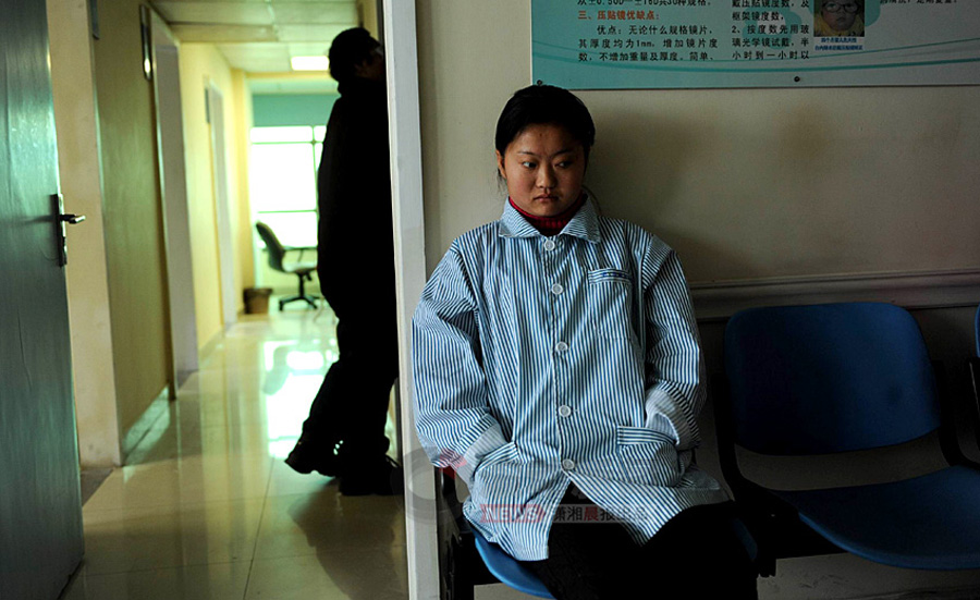 1月22日上午8點,武漢愛爾眼科醫院。21歲的周霞眼神呆滯,坐在走廊等待術前的最后一次檢查,她顯得有點忐忑不安。瀟湘晨報 記者 楊抒懷 攝
