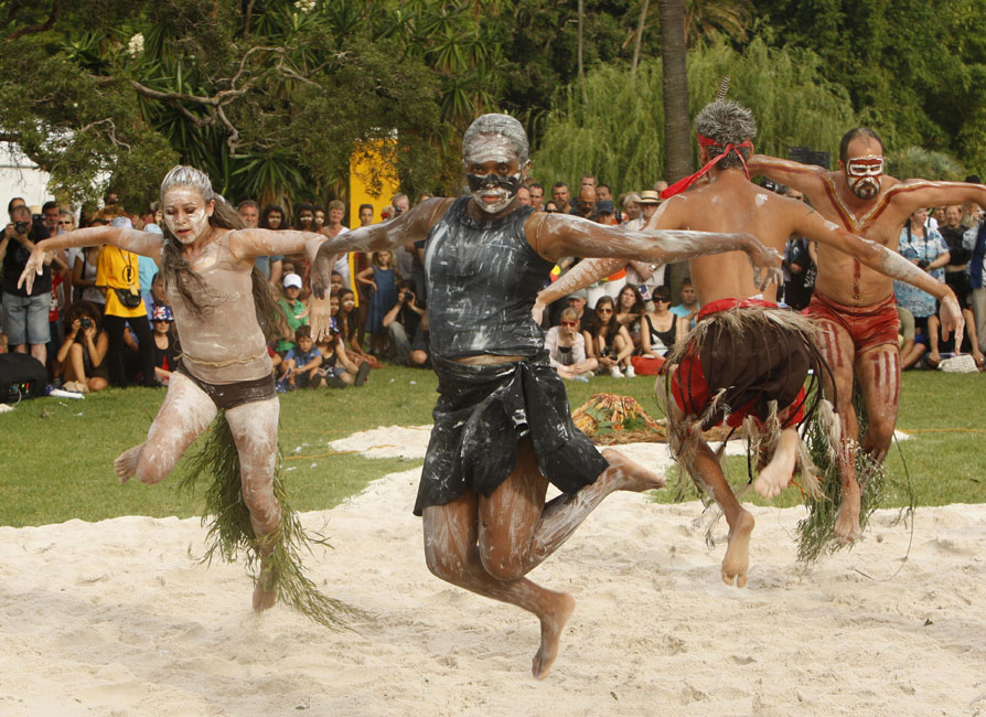 1月26日,澳大利亞土著居民在悉尼表演傳統舞蹈慶祝澳大利亞國慶日。