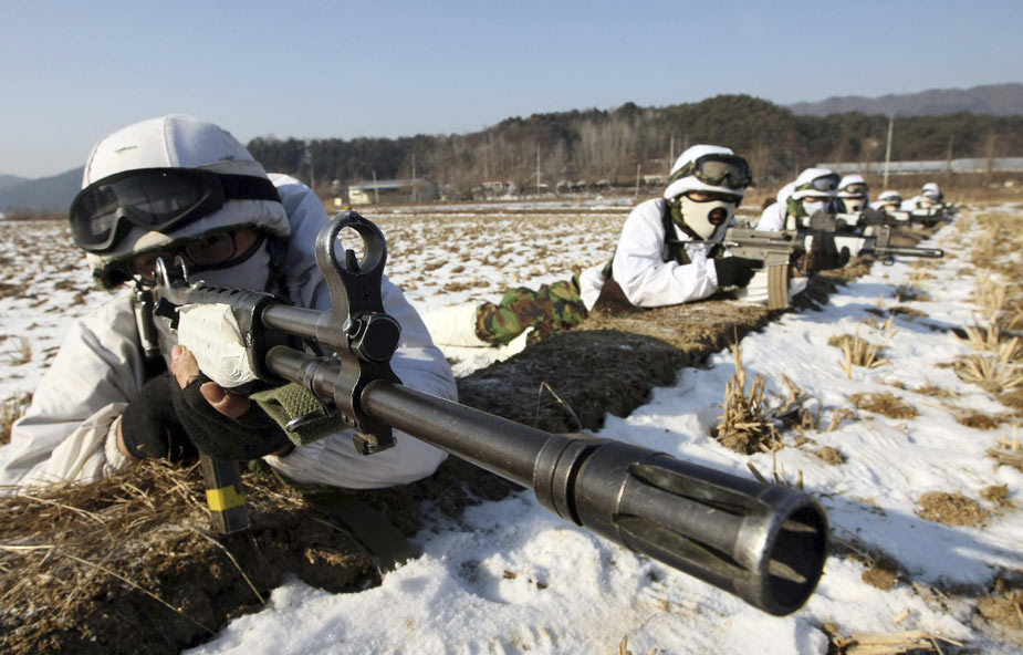 韓國陸軍部隊嚴寒中進行戰術演練