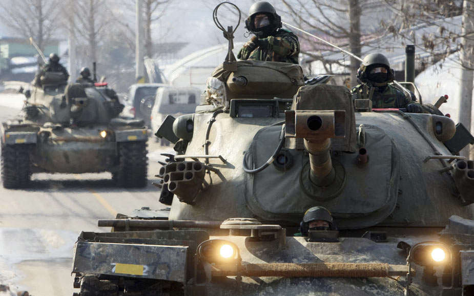 1月27日,韓國江原道,韓國陸軍部隊在嚴寒中進行戰術訓練。