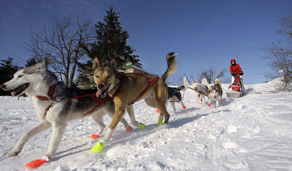 1月27日,一年一度的Sedivackuv Long雪橇犬大賽在捷克共和國的奧爾利采山脈舉行。該項賽事是歐洲地區最嚴酷、難度最高的雪橇犬大賽。圖片來源:中國新聞網