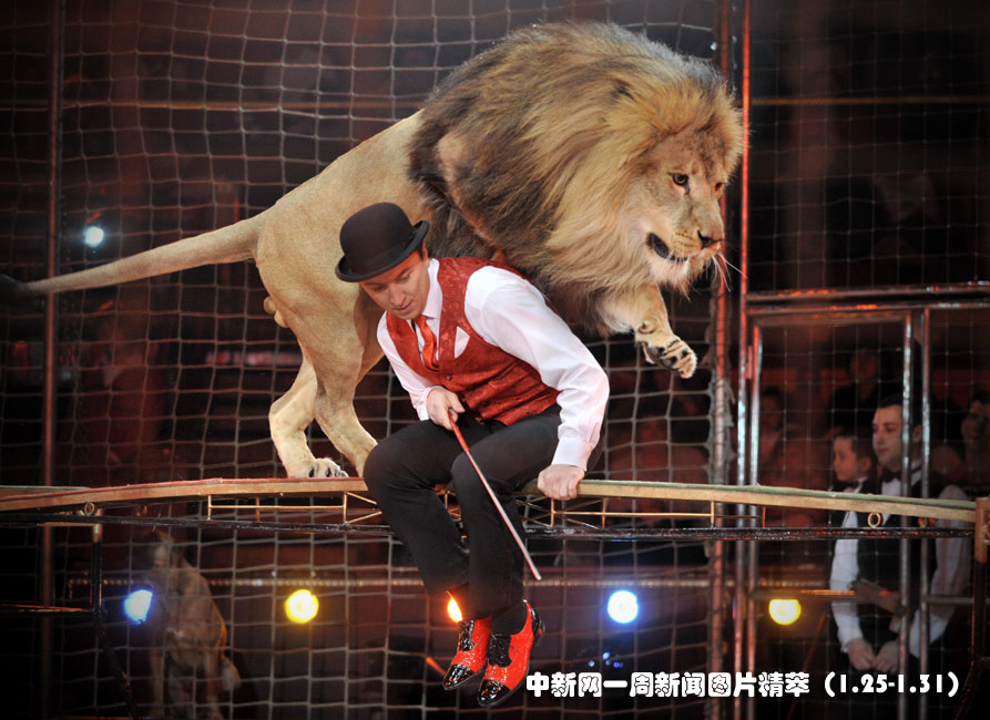 1月29日(周五),匈牙利布達佩斯,表演者正在為第八屆國際馬戲藝術節進行排練。圖片來源:中國新聞網