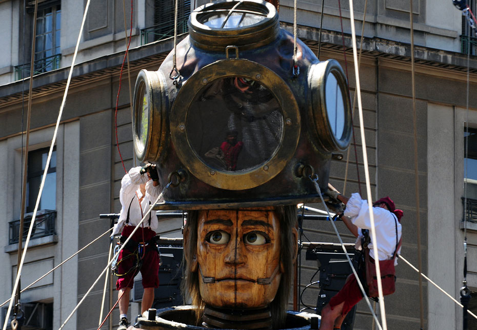 近日,智利首都圣地亞哥街頭,法國一劇團攜巨型提線木偶“小巨人”上街表演,它惟妙惟肖的表情和逼真的神態引得周圍觀眾的陣陣掌聲。圖片來源:中國新聞網