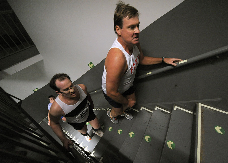 2月2日,一年一度的爬樓梯大賽在美國紐約帝國大廈舉行。數百名選手參加了第33屆帝國大廈爬樓梯大賽。帝國大廈有86層、1576級臺階。圖片來源:中國新聞網