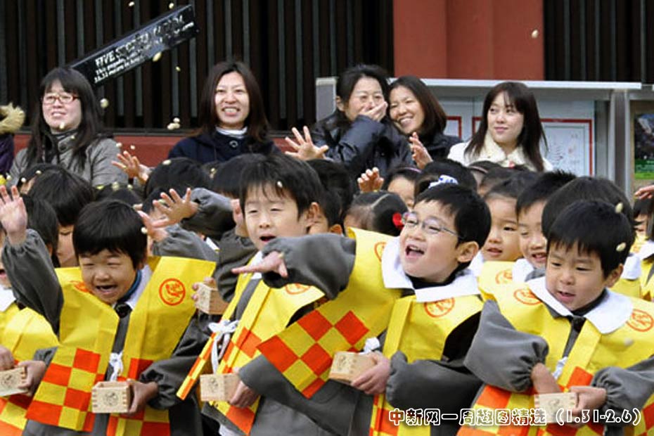 2月3日,日本首都東京,幼兒園小朋友們在“節分”的撒豆驅邪儀式上投擲大豆。圖片來源:中國新聞網>>點擊觀看詳細內容