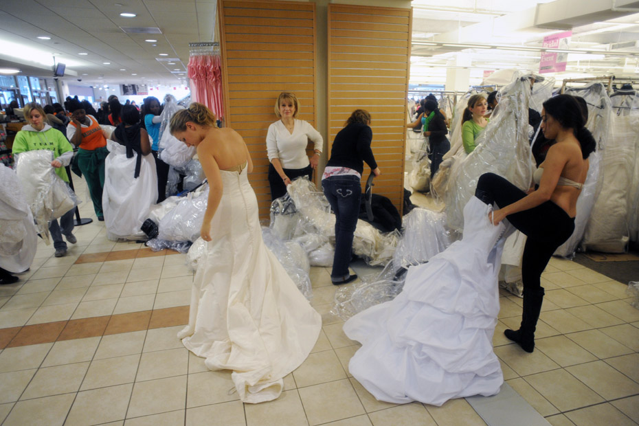 近日,美國(guó)紐約一年一度的“新娘快跑”婚紗促銷活動(dòng)舉行。千余名來自全美各地的準(zhǔn)新娘和親朋好友,早早就在門口等候,平時(shí)上千美元婚紗只需要五分之一的價(jià)格就能帶回家。圖片來源:中國(guó)新聞網(wǎng)