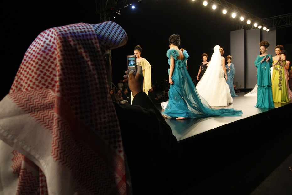 模特身著中東異域風情服飾與火辣性感的內(nèi)衣往來于T臺之上,給人們帶來了穿越時空的幻覺。圖片來源:中國新聞網(wǎng)