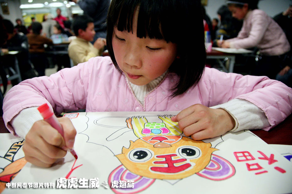 1月23日,“百童畫百虎”活動在南京鳳凰書城舉行,約100名4歲到14歲的小朋友現(xiàn)場切磋畫技,畫出自己心中最可愛的老虎模樣,迎接即將到來的虎年。中新社發(fā) 鐘山 攝