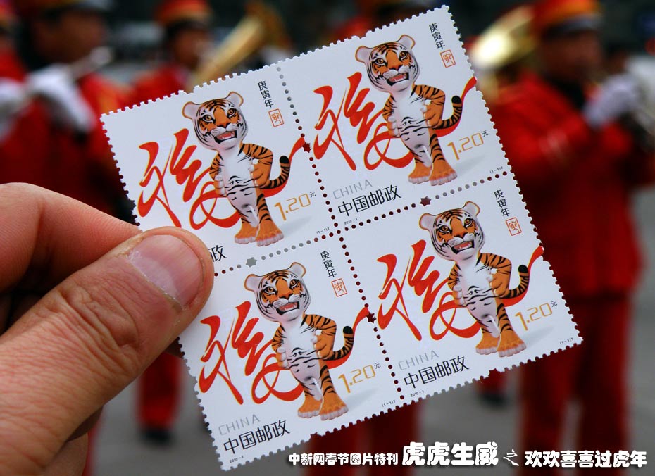 1月5日,湖北宜昌市郵政局舉行庚寅虎年生肖郵票首發式。據悉,這是中國郵政發行生肖郵票以來的“第三只虎”。中新社發 劉君鳳 攝