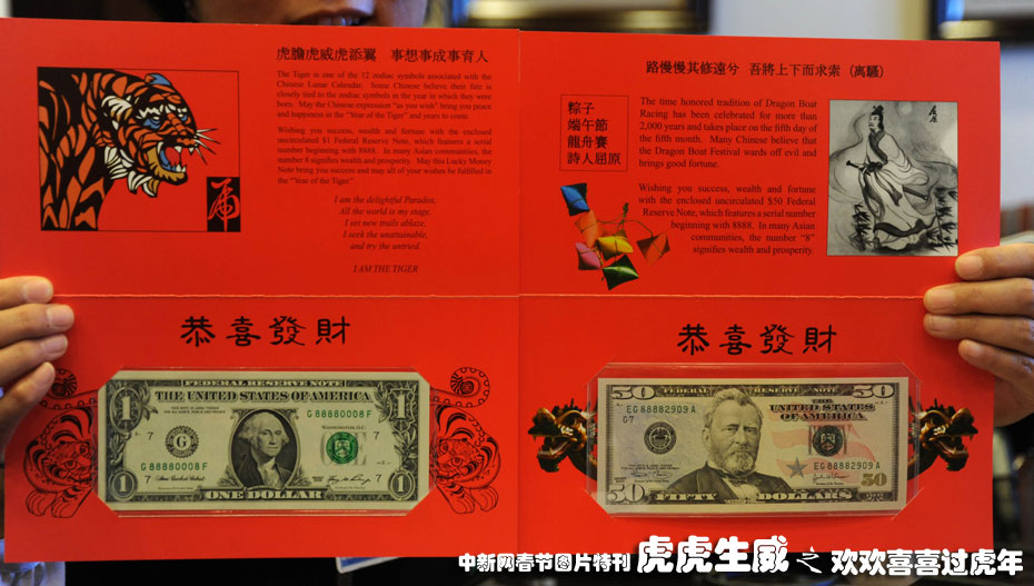 2009年12月1日,美國財(cái)政部造幣和印鈔局宣布,將限量發(fā)售中國虎年版“吉利錢”,向美國華裔社會送上新年祝福。中新社發(fā) 李靜 攝