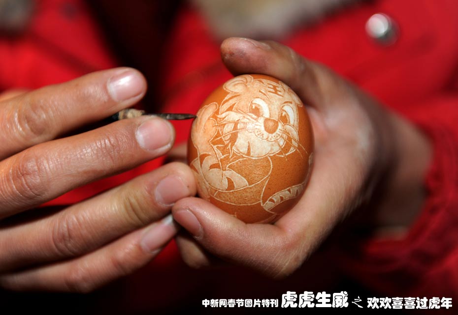 1月12日,家住合肥市瑤海區化南社區的火車司機王劍正在進行“蛋雕虎”創作。上海鐵路局合肥機務段的火車司機王劍,從小酷愛美術,業余從事蛋雕雕刻10余年,隨著農歷虎年臨近,他以雞蛋殼為原料創作出一系列造型多樣,栩栩如生的“蛋雕虎”作品,以此表達對虎年的美好期望與祝福。中新社發 解琛 攝