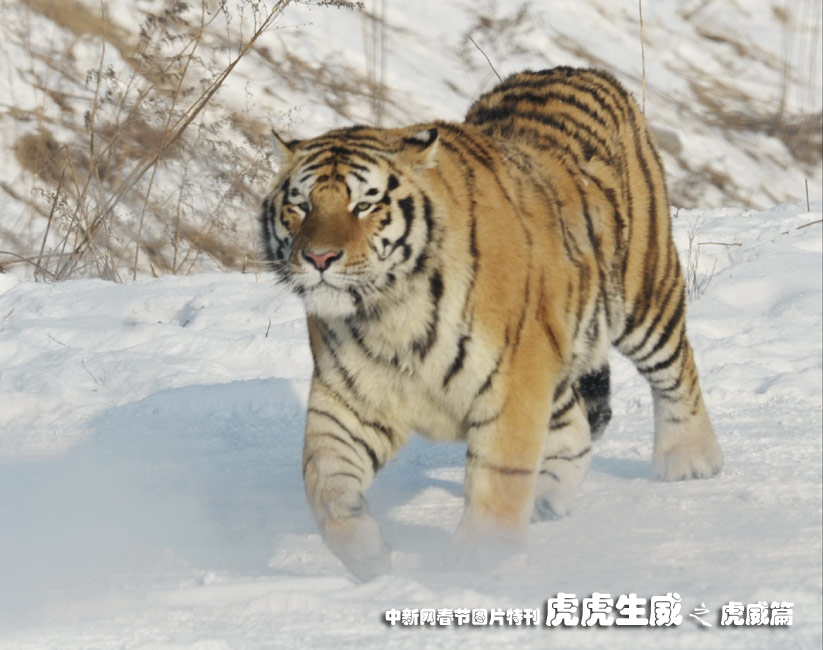 1月13日,黑龍江東北虎林園,老虎在雪地中嬉戲追逐。(王少華 張書儉 攝)