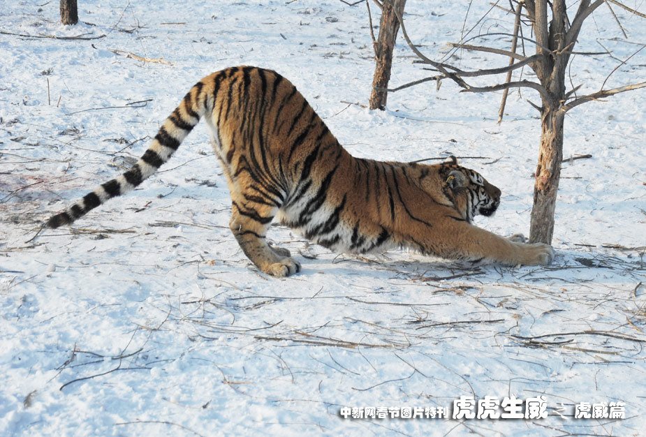 1月13日,黑龍江東北虎林園,老虎在雪地中嬉戲追逐。(王少華 張書儉 攝)