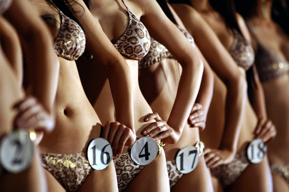 2月18日,在菲律賓首都馬尼拉,參加2010年菲律賓小姐競選的選手們在展示泳裝。當(dāng)日,共有24名佳麗參加了這項比賽。圖片來源:中國新聞網(wǎng)