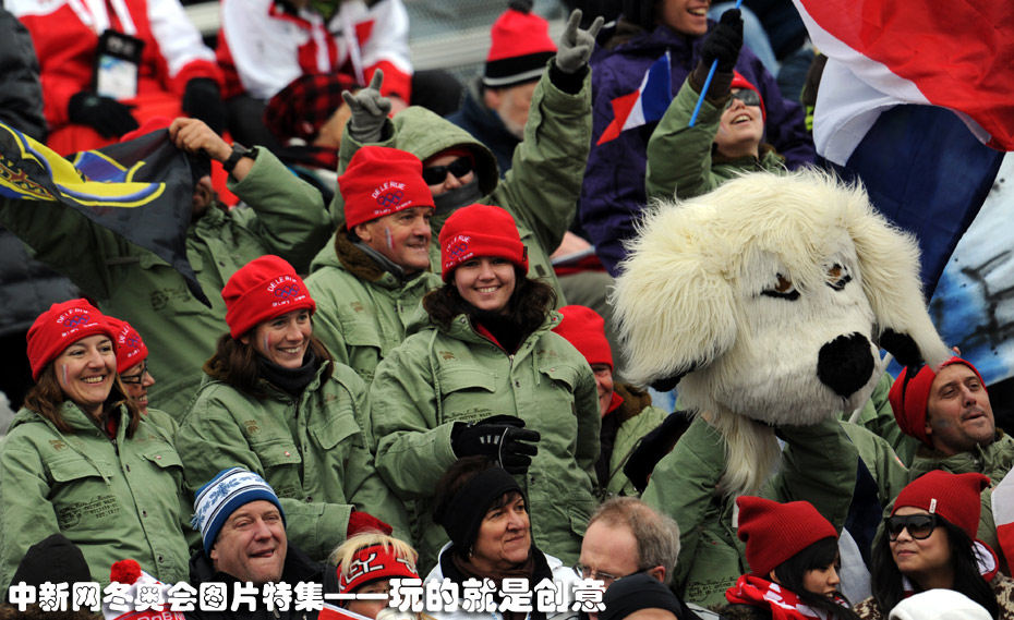 圖為男子滑雪賽場外熱情的觀眾。圖片來源:中國新聞網