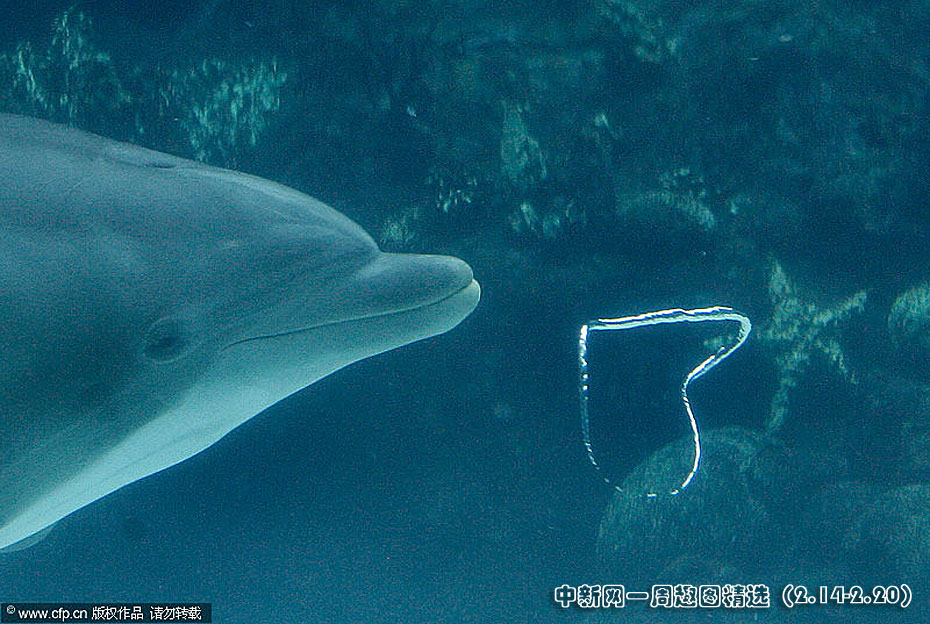 近日,美國奧蘭多海洋世界的一只寬吻海豚吹出“心形”氣泡,似乎要在情人節來臨前夕傳達濃濃愛意。圖片來源:CFP>>點擊觀看詳細內容