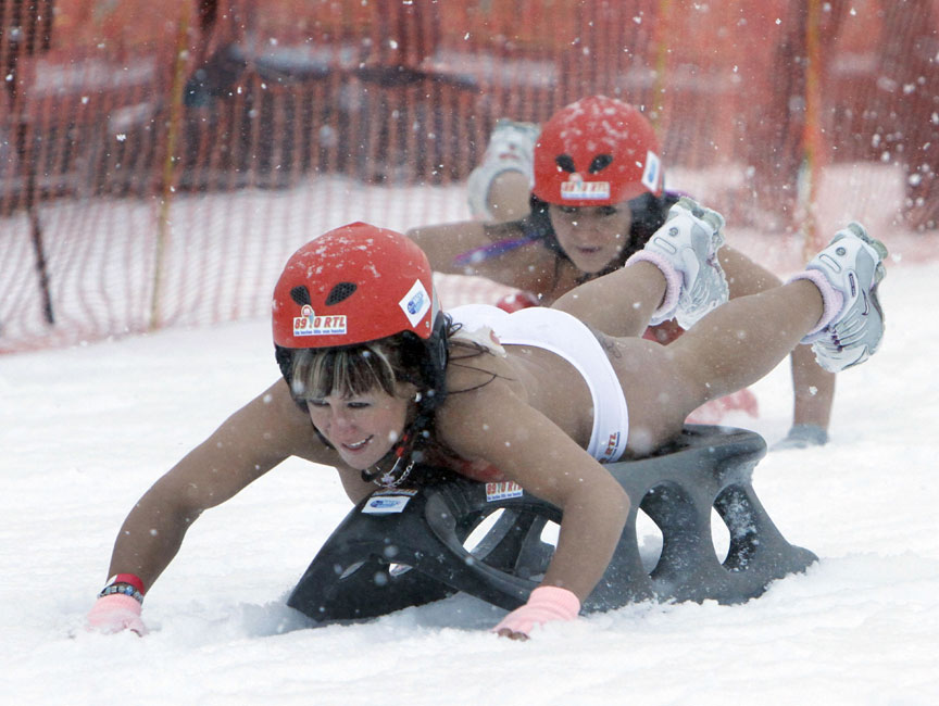 德國小鎮(zhèn)舉行雪天裸體滑行大賽