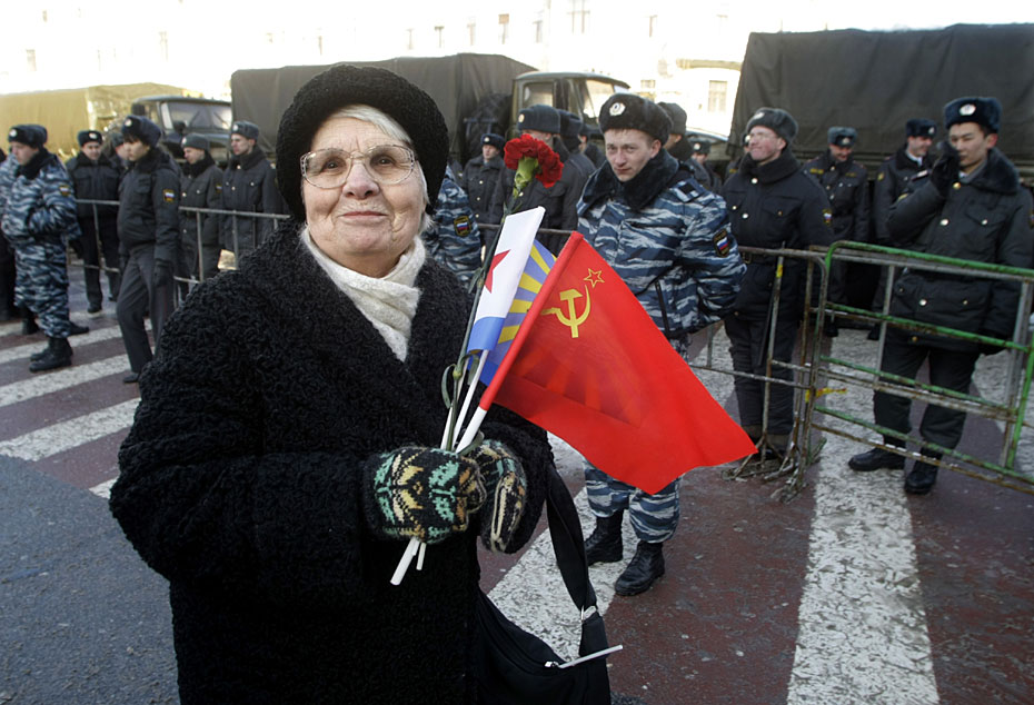 2月23日,俄羅斯莫斯科,示威者參加俄羅斯共產(chǎn)黨組織的集會(huì),抗議軍隊(duì)改革。圖片來源:中國新聞網(wǎng)