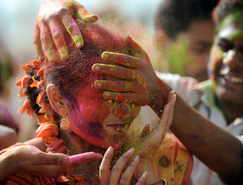 2月28日,印度舉行慶祝灑紅節活動,人們互撒顏料以示祝福。 灑紅節是印度最盛大的節日之一,在每年2月至3月間舉行。按照傳統習俗,人們會在自己的臉上和身上涂抹顏料,還向別人身上拋撒彩色顏料和粉末。