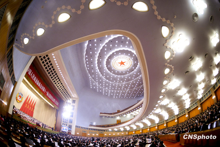 3月3日下午,中國政治生活中的年度盛會——全國政協十一屆三次會議在北京人民大會堂隆重開幕。圖片來源:中國新聞網