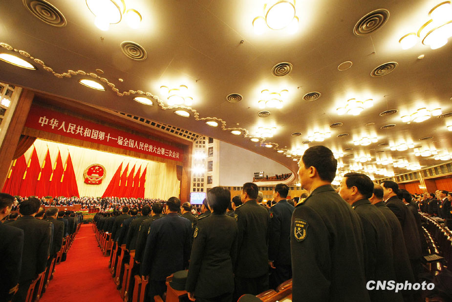 3月5日上午9時(shí),十一屆全國人大三次會(huì)議在北京隆重開幕。國務(wù)院總理溫家寶作政府工作報(bào)告。中新社發(fā) 任晨鳴 攝