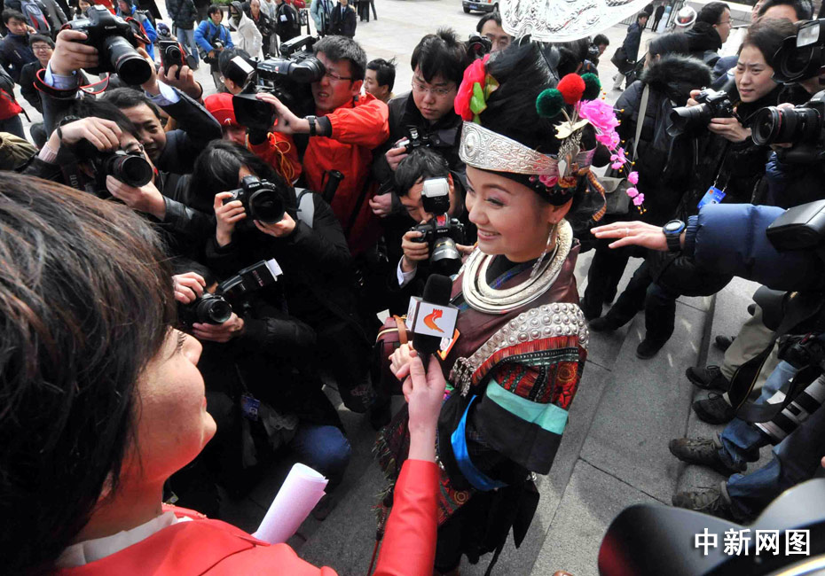 貴州苗族女代表雷阿幼朵是亮點之一。中新社記者 賈國榮 攝