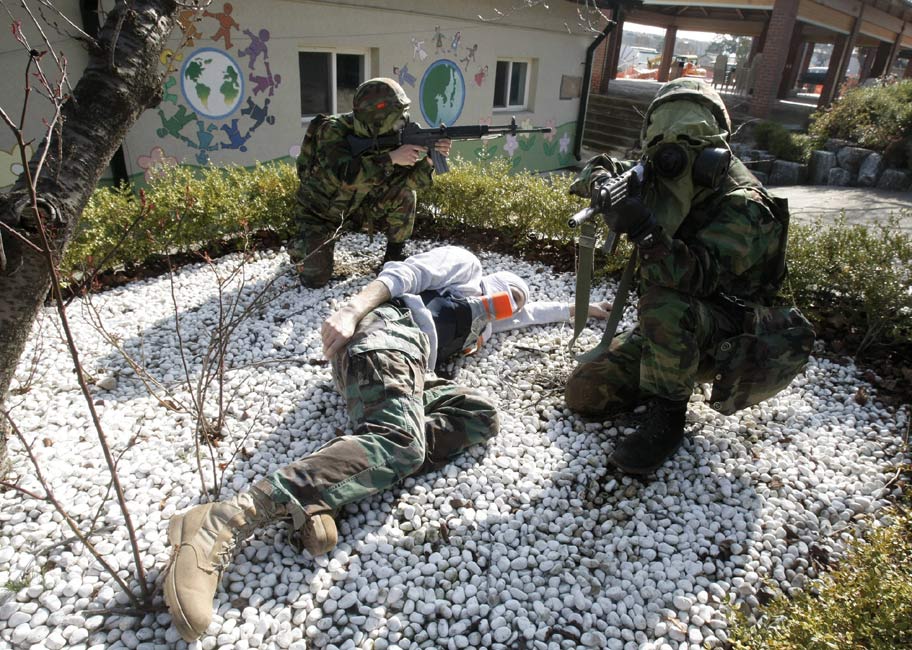 3月11日,在韓國鎮海海軍基地,韓美兩國的海軍陸戰隊舉行了聯合反恐軍事演習。