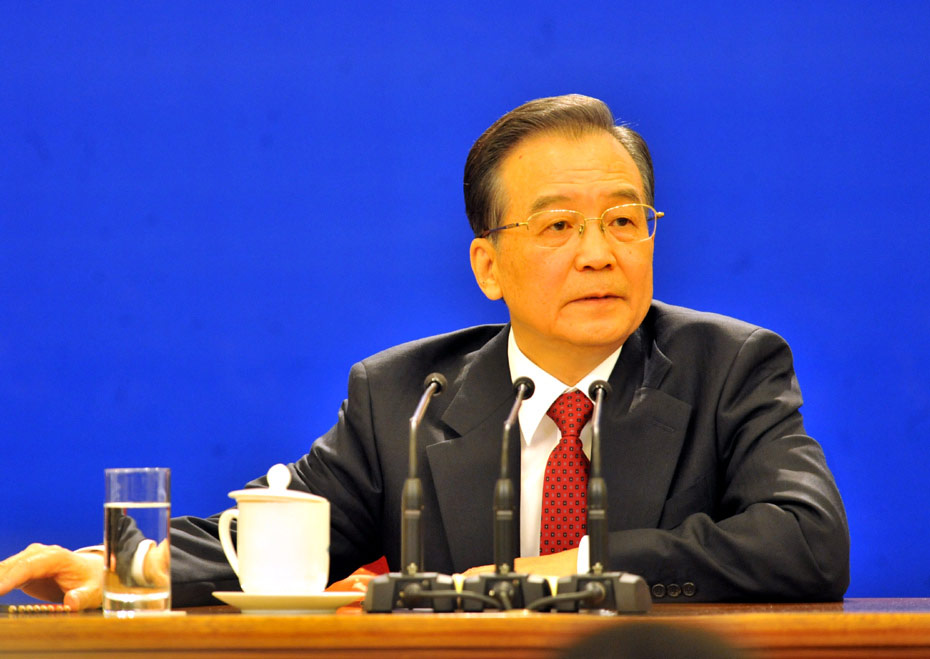 3月14日上午,國務院總理溫家寶在人民大會堂三樓金色大廳與采訪十一屆全國人大三次會議的中外記者見面并回答記者提出的問題。中新社記者 賈國榮 攝 圖片來源:中國新聞網