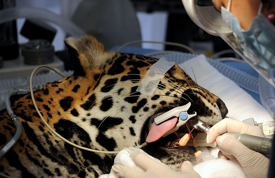 哥倫比亞獸醫(yī)為美洲虎實(shí)施牙齒手術(shù)