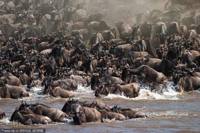 3月17日消息,捷克野生動(dòng)物攝影師瓦拉夫·希爾哈(Vaclav Silha)在肯尼亞馬賽瑪拉(Masai Mara)國(guó)家保護(hù)區(qū)拍到了罕見的牛羚大遷移場(chǎng)面。上百萬牛羚集體穿越馬拉河,同時(shí)為了防止被水中的鱷魚咬到及逃避岸邊叢林里的老虎,牛羚群制造出巨大的聲響并急沖到對(duì)岸。barcroftmedia/CFP